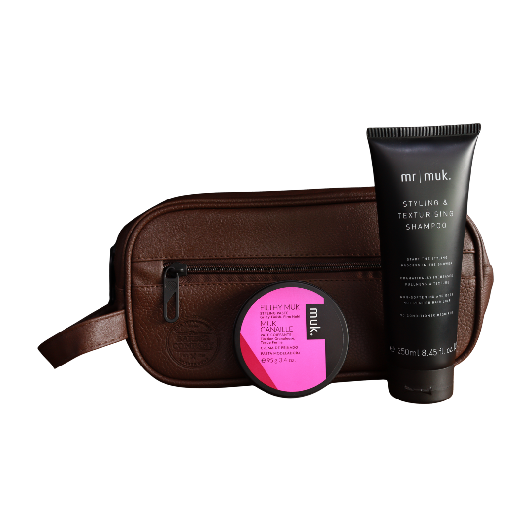 1 cera de 95gr MUK (cualquiera de los 7 tipos) + 1 shampoo Styling and Texturizing MUK de 250 ml.
